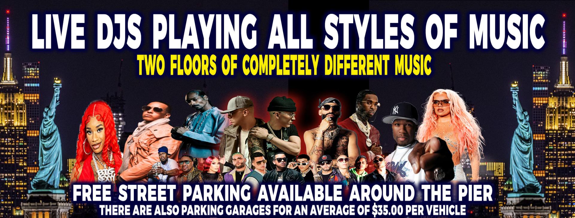 Second Floor: HipHop - dancehall - top 40's - Afrobeats Amapiano - guaracha - rock and roll and more...
